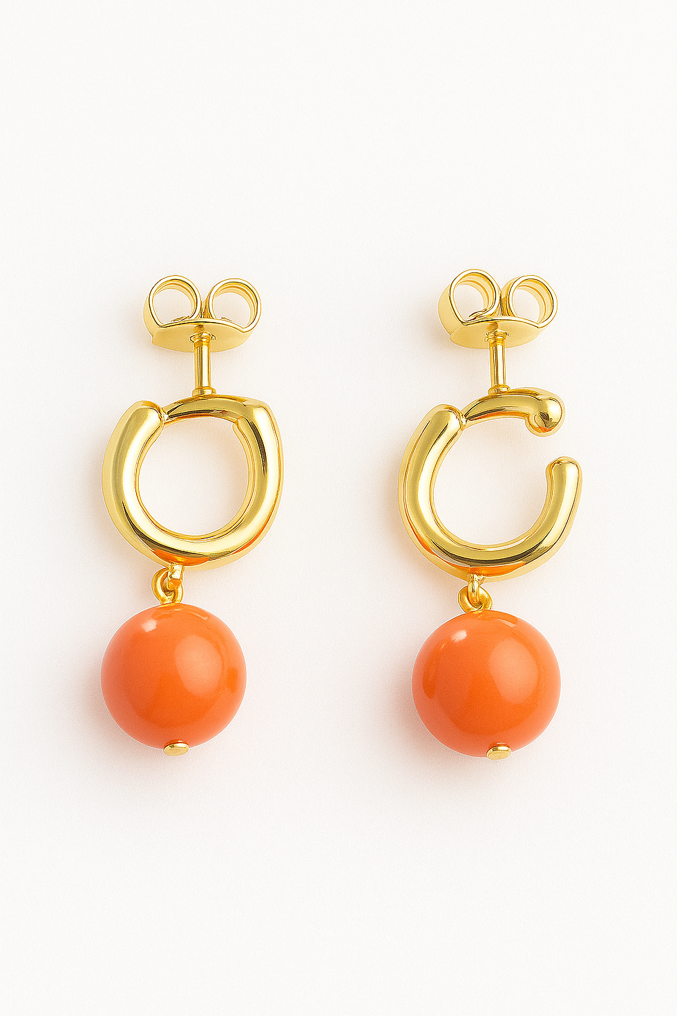 Brinco Gancho Pérola Natural & Coral 18K (6 milésimos)